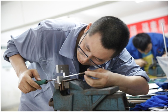 21日下午,參賽選手有序地進入考場參加首輪的理論測試,22日上午進行按類抽簽分組,開始了實操競技賽程。根據(jù)競賽日程各類別由三至六個場次分別進行,選手在規(guī)定的時間內,按照統(tǒng)一的競賽圖紙和提供的加工賽件,規(guī)范完成操作,由競賽裁判現(xiàn)場查驗封存,由專家檢測進行評判。