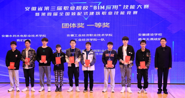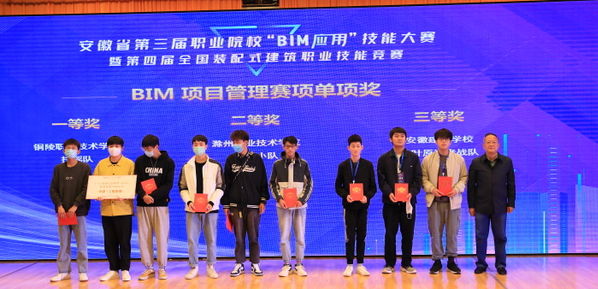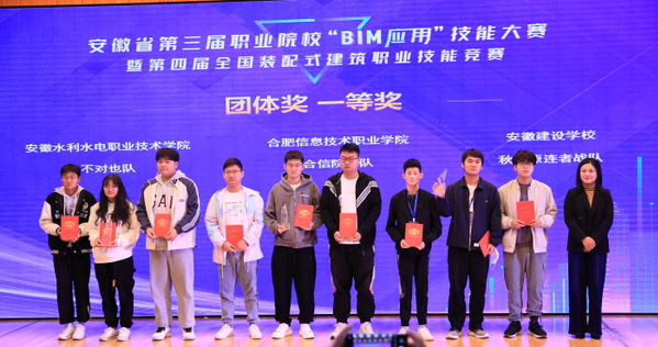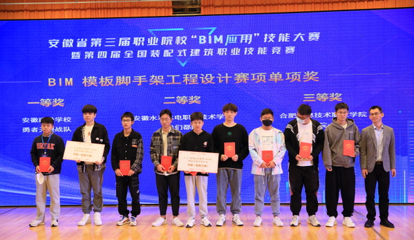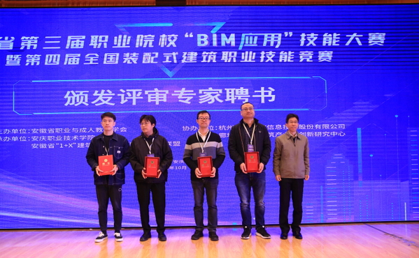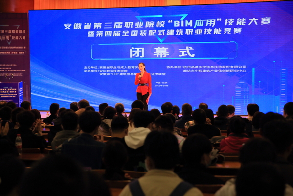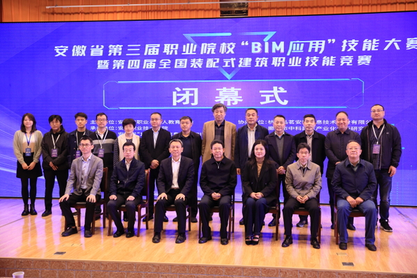 10月17日,安徽省第三屆職業(yè)院校“BIM應(yīng)用”技能大賽暨第四屆全國裝配式建筑職業(yè)技能競賽建筑信息模型技術(shù)員(學(xué)生組)選拔賽完成全部比賽任務(wù),圓滿落幕(BIM全稱Building Information Modeling,即建筑信息模型)。安慶市副市長楊林,省教育廳高教處主任任雯君,安慶職業(yè)技術(shù)學(xué)院黨委書記童宏葵、校長畢明生等領(lǐng)導(dǎo)出席閉幕式,為獲獎(jiǎng)選手和團(tuán)體頒獎(jiǎng),與大賽評(píng)審專家合影留念。安徽省BIM工程中心副主任、安徽建筑大學(xué)土木工程系主任陳東對(duì)大賽進(jìn)行總結(jié)點(diǎn)評(píng)。中國建設(shè)教育協(xié)會(huì)教育技術(shù)專業(yè)委員會(huì)秘書長、廊坊市中科建筑產(chǎn)業(yè)化創(chuàng)新研究中心副主任張建奇,安徽省“1+X”BIM 證書聯(lián)盟秘書長、安慶職院副校長譚維奇分別講話。安慶職院酒店管理專業(yè)教師沈娟娟主持儀式。
