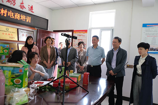 緊接著,童宏葵來到網(wǎng)絡(luò)直播室,看望正在這里指導(dǎo)直播帶貨的教師徐奕勝和王瑞陽、孫澤芳主播。在離村部不遠(yuǎn)的一片茶葉園里,幾十名茶農(nóng)正在聽章杰義老師講授茶葉種植技術(shù),童宏葵走進(jìn)田間課堂,仔細(xì)察看上課效果,親切地詢問大家是否聽得懂老師講課。并抽空和茶農(nóng)交流茶樹常規(guī)繁育和茶樹修剪技術(shù)、病蟲害預(yù)防、土壤管理、施肥技術(shù)、茶樹采摘注意事項等,贏得茶農(nóng)們陣陣掌聲。在生豬養(yǎng)殖大戶段迎春養(yǎng)殖場,十幾位養(yǎng)豬戶正在聽畜牧局專家董尚青講課,童宏葵詳細(xì)詢問了段迎春家飼養(yǎng)的生豬品種、銷售渠道和常見病的預(yù)防及處理情況,并讓他經(jīng)常和學(xué)校保持聯(lián)系,及時得到學(xué)校在技術(shù)方面的幫助。