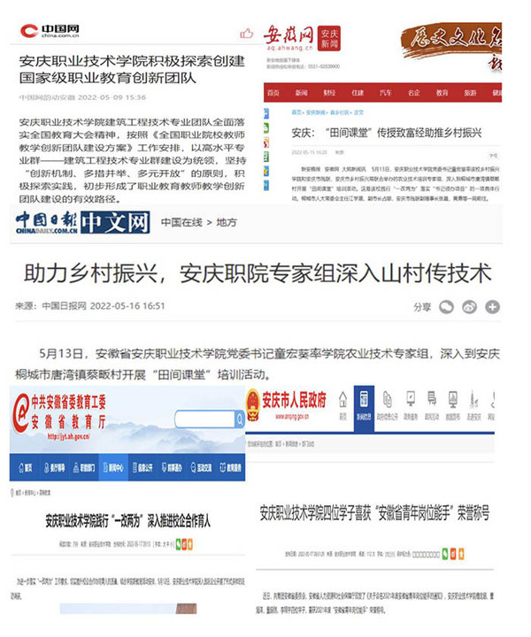 校宣傳部在職教周活動(dòng)開(kāi)展期間,進(jìn)行了一系列的新聞報(bào)道工作。通過(guò)板報(bào)、網(wǎng)站、電視、報(bào)紙、微信、QQ平臺(tái)等形式,著力宣傳報(bào)道職業(yè)教育政策、職業(yè)教育成果、優(yōu)秀畢業(yè)生事跡和職業(yè)教育服務(wù)經(jīng)濟(jì)社會(huì)發(fā)展的典型事例,先后被《中國(guó)日?qǐng)?bào)網(wǎng)》《中國(guó)網(wǎng)》《安徽教育網(wǎng)》《安慶市人民政府網(wǎng)》《掌上安慶》《安慶日?qǐng)?bào)》等轉(zhuǎn)發(fā)報(bào)道。并聯(lián)合團(tuán)委緊扣活動(dòng)周主題,暨中國(guó)共產(chǎn)主義青年團(tuán)成立100周年,開(kāi)展了“青春心向黨 建功新時(shí)代”快閃微視頻拍攝活動(dòng)。展示職教學(xué)子逐夢(mèng)成長(zhǎng),為生活帶來(lái)成功與幸福的成長(zhǎng)足跡,展顯出職教師生積極向上,奮發(fā)進(jìn)取的精神風(fēng)貌和熟練的專業(yè)技能。