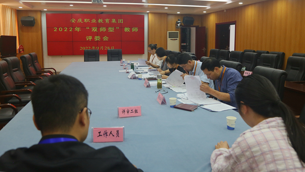 為做好集團中職學校雙師型教師評審工作,按照市教體局、人社局部署要求,根據(jù)安慶職教集團2022年度重點工作計劃安排,集團秘書處先后印發(fā)《關于報送2022年度“雙師型”教師認定材料的通知》(安職集團[2022]5號)和《關于做好2022年度“雙師型”教師認定工作的通知》(安職集團[2022]6號)兩個文件,明確以《安慶職業(yè)教育集團“雙師型”教師認定及管理辦法(試行)》(教體職成〔2021〕28號)文件為此次評審工作認定依據(jù),確定了個人申請、學校初評、集團秘書處評審核定、公示上報等評審認定程序。為確保本次認定評審工作順利開展,集團秘書處制定出臺《安慶職教集團2022年度“雙師型”教師評審工作實施方案》,成立評審工作領導小組,設立評委會,遴選評審專家,確定評審工作階段流程,組建了評審組、會務材料組、監(jiān)督組、保衛(wèi)組。
