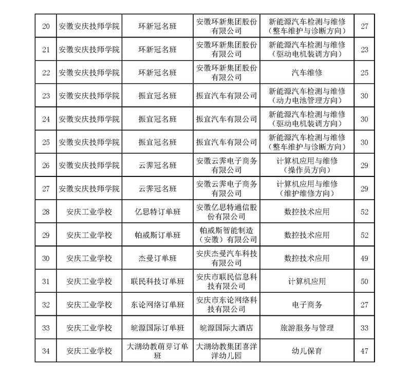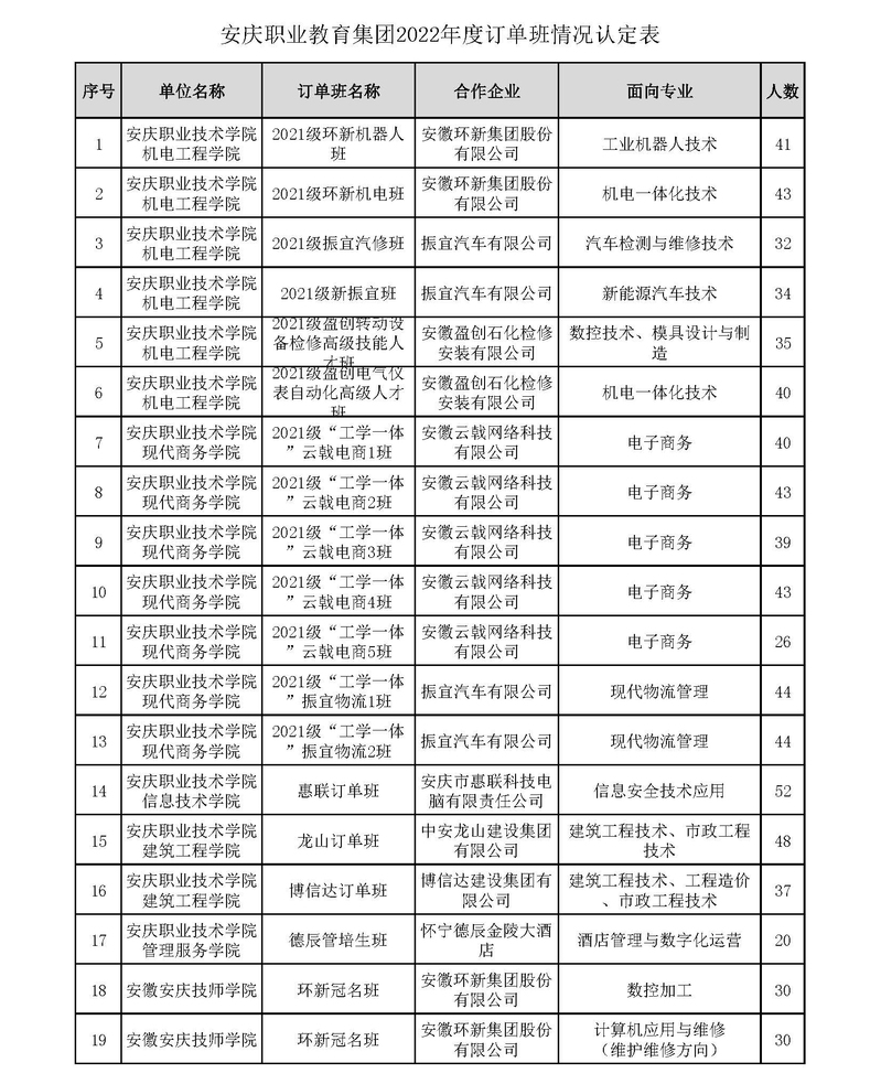 根據(jù)集團(tuán)《關(guān)于申報(bào)2022年招生、校企合作訂單班和市級(jí)高技能人才培訓(xùn)基地的通知》(安職集團(tuán)〔2022〕11號(hào))文件要求,集團(tuán)秘書處組織開展了2022年度招生、校企合作訂單班和市級(jí)高技能人才培訓(xùn)基地項(xiàng)目評(píng)審工作,制定出臺(tái)《安慶職業(yè)教育集團(tuán)2022年度招生、校企合作訂單班和市級(jí)高技能人才培訓(xùn)基地項(xiàng)目評(píng)審工作實(shí)施方案》,成立評(píng)審工作領(lǐng)導(dǎo)小組,設(shè)立評(píng)委會(huì),遴選評(píng)審專家,并嚴(yán)格按照認(rèn)定標(biāo)準(zhǔn),對(duì)各校提供的申報(bào)材料進(jìn)行了評(píng)審,認(rèn)定結(jié)果現(xiàn)予公示。