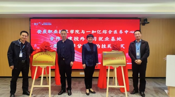 為響應(yīng)國(guó)家實(shí)施積極應(yīng)對(duì)人口老齡化戰(zhàn)略,強(qiáng)化職業(yè)教育與產(chǎn)業(yè)企業(yè)需求相對(duì)接,積極助力推進(jìn)老齡事業(yè)、老齡產(chǎn)業(yè)和養(yǎng)老專業(yè)協(xié)同發(fā)展,10月24日上午,安慶職業(yè)技術(shù)學(xué)院管理服務(wù)學(xué)院和老年大學(xué)與安慶一加億綜合醫(yī)養(yǎng)中心,舉行合作共建“安慶職業(yè)技術(shù)學(xué)院管理服務(wù)學(xué)院一加億校外實(shí)習(xí)就業(yè)基地”和“安慶職業(yè)技術(shù)學(xué)院老年大學(xué)一加億分?!焙灱s活動(dòng)。安慶職院黨委委員、組織部部長(zhǎng)高潤(rùn)霞、安慶市民政局四級(jí)調(diào)研員周志遠(yuǎn)、安慶一加億醫(yī)養(yǎng)服務(wù)有限公司法人代表劉林志出席活動(dòng),管理服務(wù)學(xué)院、繼續(xù)教育學(xué)院相關(guān)負(fù)責(zé)同志及師生代表參加了簽約儀式。