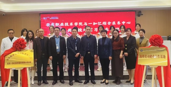 為響應(yīng)國(guó)家實(shí)施積極應(yīng)對(duì)人口老齡化戰(zhàn)略,強(qiáng)化職業(yè)教育與產(chǎn)業(yè)企業(yè)需求相對(duì)接,積極助力推進(jìn)老齡事業(yè)、老齡產(chǎn)業(yè)和養(yǎng)老專業(yè)協(xié)同發(fā)展,10月24日上午,安慶職業(yè)技術(shù)學(xué)院管理服務(wù)學(xué)院和老年大學(xué)與安慶一加億綜合醫(yī)養(yǎng)中心,舉行合作共建“安慶職業(yè)技術(shù)學(xué)院管理服務(wù)學(xué)院一加億校外實(shí)習(xí)就業(yè)基地”和“安慶職業(yè)技術(shù)學(xué)院老年大學(xué)一加億分?!焙灱s活動(dòng)。安慶職院黨委委員、組織部部長(zhǎng)高潤(rùn)霞、安慶市民政局四級(jí)調(diào)研員周志遠(yuǎn)、安慶一加億醫(yī)養(yǎng)服務(wù)有限公司法人代表劉林志出席活動(dòng),管理服務(wù)學(xué)院、繼續(xù)教育學(xué)院相關(guān)負(fù)責(zé)同志及師生代表參加了簽約儀式。