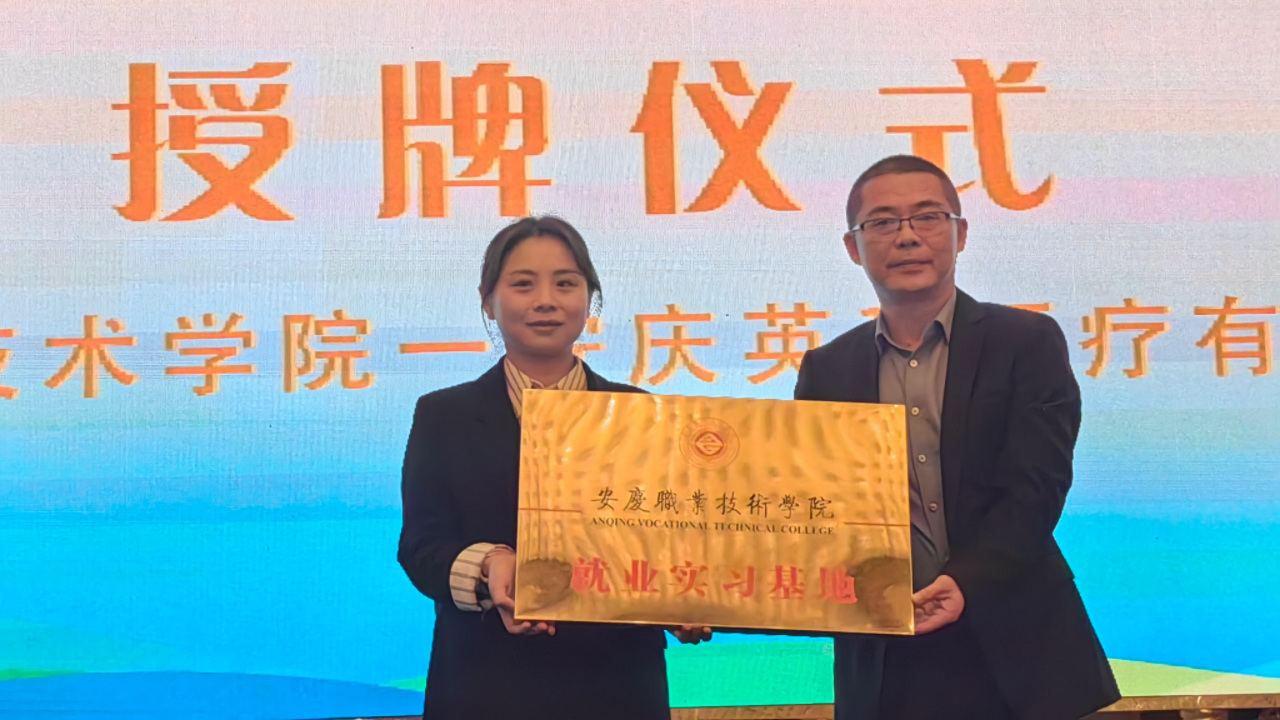 活動現(xiàn)場,安慶職院與安慶英科醫(yī)療有限公司舉行了就業(yè)實(shí)習(xí)基地授牌儀式。(文、圖:陳慧玲 審稿:桂 駿)