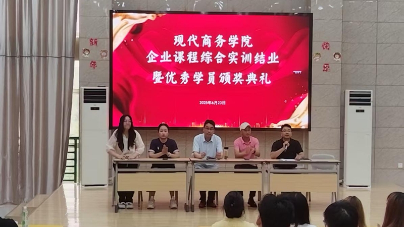6月23日下午,安慶職業(yè)技術(shù)學(xué)院現(xiàn)代商務(wù)學(xué)院舉行上半年企業(yè)綜合實訓(xùn)課程結(jié)業(yè)暨優(yōu)秀學(xué)員頒獎典禮?,F(xiàn)代商務(wù)學(xué)院院長金啟勝,安徽云霽電商公司負(fù)責(zé)人、安徽省產(chǎn)業(yè)教授汪義德,學(xué)院教學(xué)工作負(fù)責(zé)人、學(xué)生工作負(fù)責(zé)人、教師代表以及參加本次實訓(xùn)課程的全體學(xué)生共同出席。該院學(xué)生工作負(fù)責(zé)人主持。