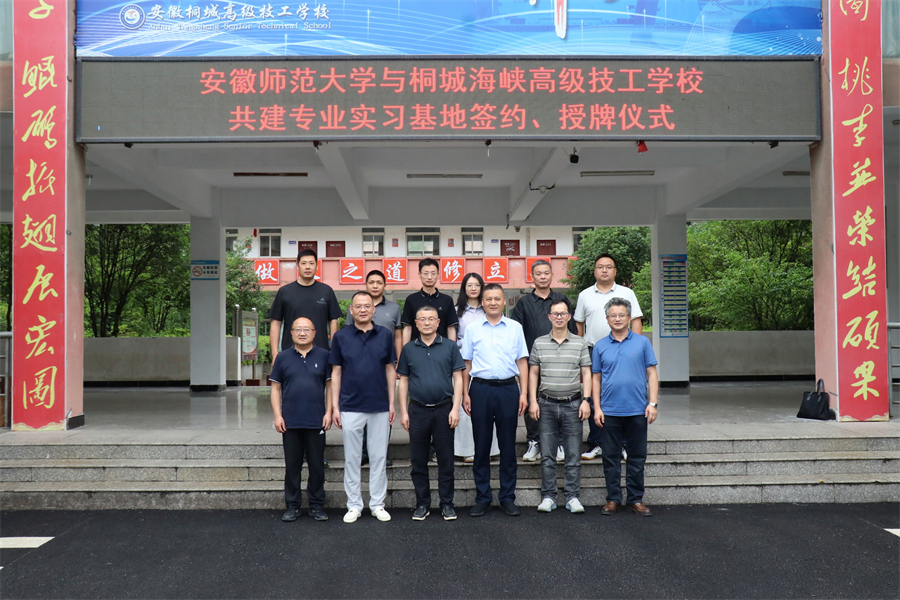 會(huì)上舉行了隆重的簽約授牌儀式,安師大生態(tài)與環(huán)境學(xué)院院長(zhǎng)胡好遠(yuǎn)與桐城海峽高級(jí)技工學(xué)校校長(zhǎng)郭昌盛分別代表雙方簽署合作協(xié)議,并進(jìn)行了現(xiàn)場(chǎng)授牌。