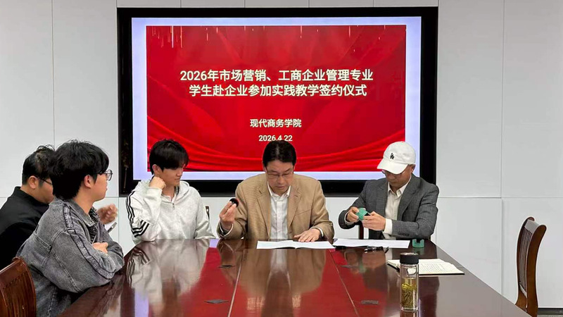 4月22日,安慶職業(yè)技術學院現(xiàn)代商務學院在3號教學樓510會議室舉行“618”企業(yè)實訓教學項目簽約儀式。安徽云霽電子商務有限公司總經(jīng)理汪義德,該院黨總支書記、院長金啟勝簽約。該院教學工作負責人,相關班級輔導員及24級學生代表參加簽約儀式。