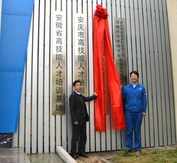 在中船柴油機有限公司調(diào)研時,畢明生和公司總工程師張仕明共同為校企共建的技能大師工作室揭牌。