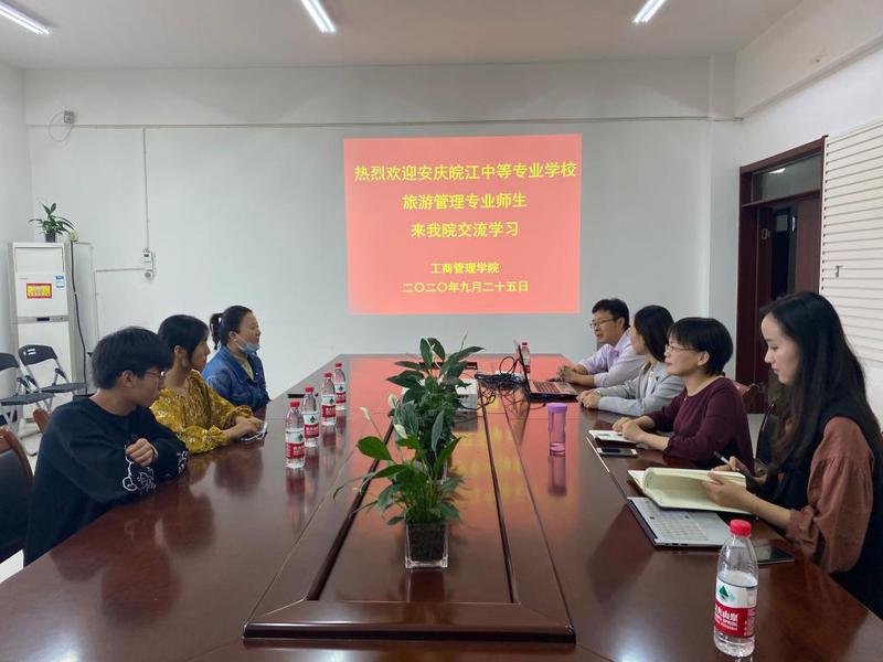 近日,安慶皖江中等專業(yè)學(xué)校旅游管理專業(yè)師生3人到安徽機(jī)電職業(yè)技術(shù)學(xué)院交流學(xué)習(xí)。安徽機(jī)電職業(yè)技術(shù)學(xué)院教務(wù)處副處長張錢斌、工商管理學(xué)院副院長何赟、旅游管理教研室主任沈宏、專業(yè)教師吳燕參與接待和交流。
