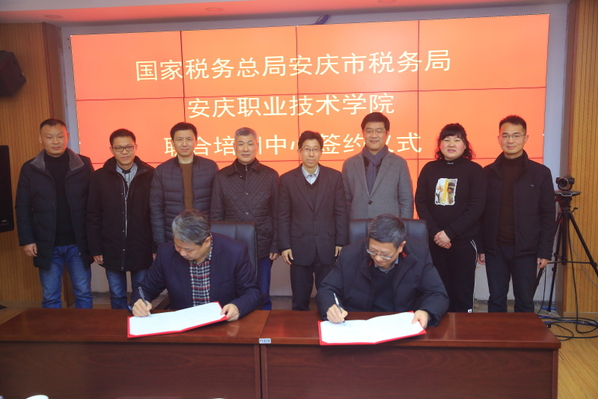 2月5日上午,安慶職業(yè)技術學院與國家稅務總局安慶市稅務局共建的安慶市稅務系統(tǒng)聯(lián)合培訓中心正式簽約并揭牌。安慶職院校長畢明生,安慶市稅務局黨委副書記、副局長蘇自勤為中心揭牌。安慶職院副校長李克讓出席。