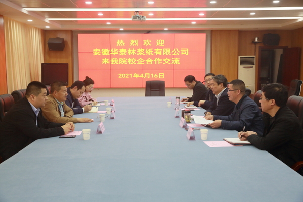 4月16日上午,安徽華泰林漿紙有限公司總經(jīng)理一行四人到安慶職業(yè)技術(shù)學(xué)院考察交流。安慶職院副校長李克讓在第二會議室接待了李銀河一行。