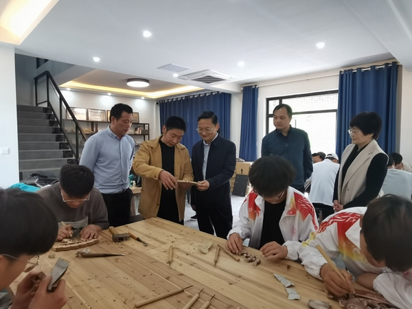 儀式前,王進(jìn)與徽派木雕非遺傳承人汪德洪進(jìn)行了深入交流,了解該基地在人才培養(yǎng)、技藝傳承、教學(xué)改革等方面的情況,并要求建筑工程學(xué)院充分發(fā)揮大師工作室在內(nèi)涵建設(shè)、師資培養(yǎng)、產(chǎn)教融合、社會(huì)服務(wù)上的優(yōu)勢(shì),創(chuàng)新協(xié)同育人新模式,在實(shí)訓(xùn)教學(xué)中融入工匠精神、勞動(dòng)教育,為培養(yǎng)技能人才和弘揚(yáng)民族技藝提供支撐。