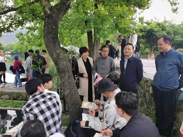 王進(jìn)一行還看望了正在宏村寫生實(shí)訓(xùn)的20級(jí)建筑裝飾工程技術(shù)專業(yè)師生,勉勵(lì)大家刻苦練習(xí)繪畫寫生技法,充分學(xué)習(xí)徽派建筑文化,體會(huì)中國古建筑精妙技藝,樹立技能報(bào)國的理想。同學(xué)們備受鼓舞,紛紛表示要努力學(xué)習(xí),掌握本領(lǐng),爭(zhēng)做堪當(dāng)民族復(fù)興重任的時(shí)代新人。(文、圖:張賽 審稿:陳月萍)