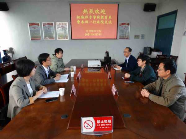 4月23日上午,桐城師范高等專(zhuān)科學(xué)校學(xué)前教育系副主任曹杏田一行到安慶職業(yè)技術(shù)學(xué)院考察交流實(shí)訓(xùn)室建設(shè)與管理工作。安慶職業(yè)技術(shù)學(xué)院管理服務(wù)學(xué)院院長(zhǎng)、黨總支書(shū)記高潤(rùn)霞在管理服務(wù)學(xué)院會(huì)議室接待了曹杏田一行,管理服務(wù)學(xué)院副院長(zhǎng)楊厚松、幼兒發(fā)展與健康管理專(zhuān)業(yè)相關(guān)同志參加了交流。