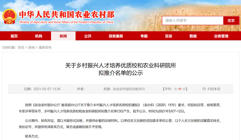 日前,農(nóng)業(yè)農(nóng)村部對鄉(xiāng)村振興人才培養(yǎng)優(yōu)質(zhì)校和農(nóng)業(yè)科研院所擬推介名單進(jìn)行公示,安慶職業(yè)技術(shù)學(xué)院喜獲入圍。