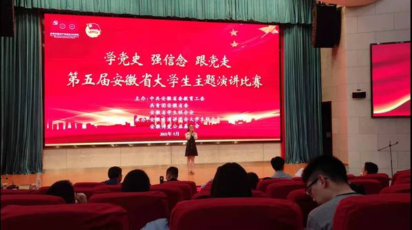 比賽現(xiàn)場,選手們圍繞學(xué)習(xí)“四史”、參加主題黨團日活動、疫情期間參加的社會實踐、家風(fēng)家教等主題,抒發(fā)了青年學(xué)子熱愛祖國、擁護中國共產(chǎn)黨、建設(shè)美好校園、提升綜合素質(zhì)的熱烈情感,表達了為新時代現(xiàn)代化美好安徽建設(shè)貢獻青春力量的決心和信心。孫澤芳同學(xué)以《用青春擁抱新時代》為題進行展示,演講擲地有聲,表現(xiàn)清新自然,感情飽滿充沛,最終獲三等獎。(圖、文:馮豐 審核:陳穎)