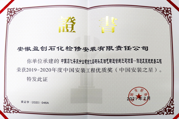 4月22日,2019-2020年度中國安裝工程優(yōu)質(zhì)獎(中國安裝之星)頒獎大會在濟南舉行,由盈創(chuàng)公司承建的中國石化安慶分公司?;反a頭及油氣輸送管線遷建項目——儲運及系統(tǒng)配套工程 (以下簡稱8828工程)喜獲中國安裝工程優(yōu)質(zhì)獎——“中國安裝之星”,填補了公司安裝工程領(lǐng)域該獎項的空白。公司機動部經(jīng)理何忠民獲中國安裝工程優(yōu)質(zhì)獎(中國安裝之星)工程項目經(jīng)理特別榮譽。