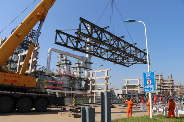 8828工程自安慶長江沙漠洲新建危化品碼頭至廠區(qū)罐區(qū)。包括管廊鋼結(jié)構(gòu)制作安裝、管道安裝和配套的電氣、電信、控制儀表安裝工程及其他公用工程、配套設(shè)施等。自開工伊始,盈創(chuàng)公司就明確了爭創(chuàng)優(yōu)質(zhì)工程的質(zhì)量目標,通過精心策劃,組建創(chuàng)優(yōu)小組,強化責任落實,對整個施工過程進行了總體布局與細節(jié)把控。管廊水平投影長度約5070米,公司完成了總重量為2600噸型鋼鋼桁架制作安裝,總長度150千米、總重量7000噸管線的架設(shè)安裝,管道焊接拍片一次合格率達到97.3%,工程質(zhì)量達到同行業(yè)先進水平。該工程項目的投運徹底消除了長輸管線安全隱患,有效改善了安慶石化的操作和作業(yè)環(huán)境,提升了新的原料和成品油出廠水路管線的安全。