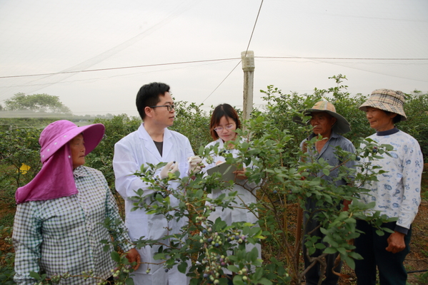 安慶職院教師劉冬、李萍兩位博士致力于農(nóng)產(chǎn)品精深加工技術(shù)、植物病蟲害等方面的研究,兩人領(lǐng)銜的農(nóng)林與服裝學(xué)院專業(yè)教師團(tuán)隊(duì)活躍在山坡田間和農(nóng)企車間,從土壤改良、病蟲草害綠色防控到藍(lán)莓系列產(chǎn)品精深加工等方面,為懷寧縣黃墩鎮(zhèn)藍(lán)莓企業(yè)提供技術(shù)服務(wù)。