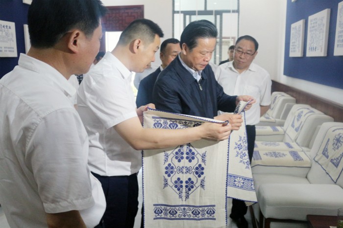 望江挑花至今已有1000多年歷史,2008年入選為國家非物質(zhì)文化遺產(chǎn)名錄。多年來,安慶皖江中等專業(yè)學(xué)校在望江挑花的保護、傳承、研發(fā)方面做了大量工作。張昌爾一行實地參觀了望江挑花保護與傳承基地,聽取該校董事長吳燦及非遺傳承人介紹挑花工藝、制作流程,詳細了解挑花產(chǎn)業(yè)發(fā)展情況。張昌爾指出,望江挑花作為國家非物質(zhì)文化遺產(chǎn),做工精細、產(chǎn)品精美,是望江重要的文化資源。要積極做好傳承工作,充分挖掘文化內(nèi)涵,不斷創(chuàng)新載體,加強人才培養(yǎng),讓挑花工藝發(fā)揚光大,助力鄉(xiāng)村振興。要利用國家非物質(zhì)文化遺產(chǎn)這一品牌,積極搭建平臺,開展招商引資、招賢引智,賦能挑花產(chǎn)業(yè)高質(zhì)量發(fā)展。