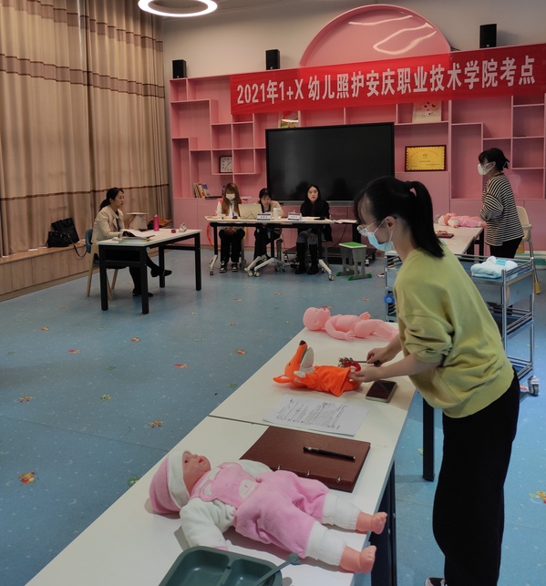 11月20-21日,安慶職業(yè)技術(shù)學(xué)院2021年1+X幼兒照護(hù)職業(yè)技能等級(jí)證書(shū)考試順利舉行。來(lái)自幼兒發(fā)展與健康管理專(zhuān)業(yè)的152名學(xué)生分三批次進(jìn)行理論和實(shí)操考試??键c(diǎn)負(fù)責(zé)人副校長(zhǎng)譚維奇帶領(lǐng)巡考組成員檢查了整個(gè)考試工作。