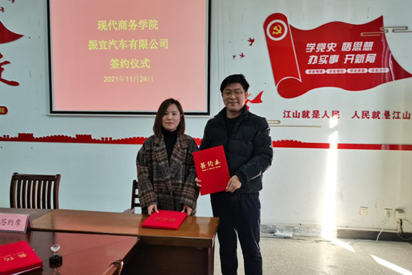 為進(jìn)一步深化校企合作,積極探索“零距離”訂單式專(zhuān)業(yè)人才培養(yǎng)模式,不斷提高人才培養(yǎng)質(zhì)量。11月24日下午,安慶職業(yè)技術(shù)學(xué)院現(xiàn)代商務(wù)學(xué)院與相關(guān)企業(yè)共建人才培養(yǎng)基地集中簽約儀式在3#510會(huì)議室舉行。安徽云戟網(wǎng)絡(luò)科技有限公司、振宜汽車(chē)有限公司等企業(yè)代表應(yīng)邀出席簽約儀式?,F(xiàn)代商務(wù)學(xué)院黨總支書(shū)記、院長(zhǎng)高飛教授出席并講話。簽約儀式由該院教學(xué)管理負(fù)責(zé)同志主持,全體專(zhuān)業(yè)建設(shè)負(fù)責(zé)人參加。