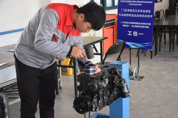 本次考試共有56名學(xué)生報名參加,設(shè)置4個考場,8個考試工位,每個考生須通過4個項目的測試,每場考試30分鐘??荚囍?,56名考生連續(xù)作戰(zhàn),精神飽滿,沉著冷靜,嚴(yán)肅認(rèn)真,考務(wù)和設(shè)備技術(shù)保障人員各司其職,考試整車、臺架運(yùn)行良好,考試過程嚴(yán)謹(jǐn)有序??荚囘^程全程攝像,實時上傳動態(tài)考核視頻,考生按照考試翻轉(zhuǎn)表進(jìn)行輪換操作考試。