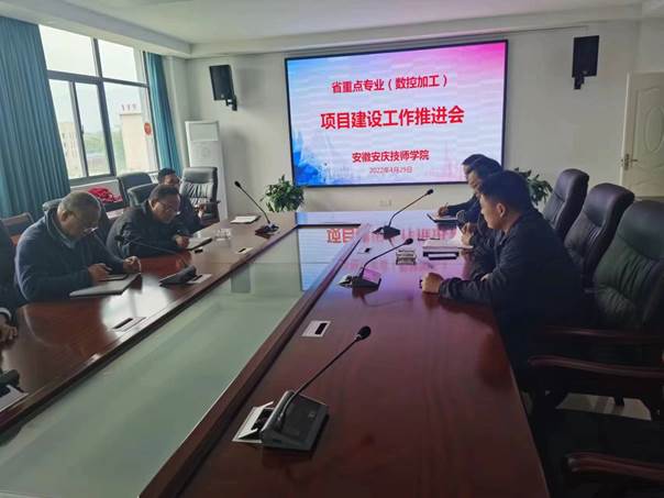 2022年4月29日,“省級重點專業(yè)(數(shù)控加工)項目建設”工作推進會在安慶技師學院實訓樓②四樓會議室召開。會議由技師學院機電工程系主任陳學斌主持,徐波副院長、相關部門負責人和項目建設組成員參加會議。