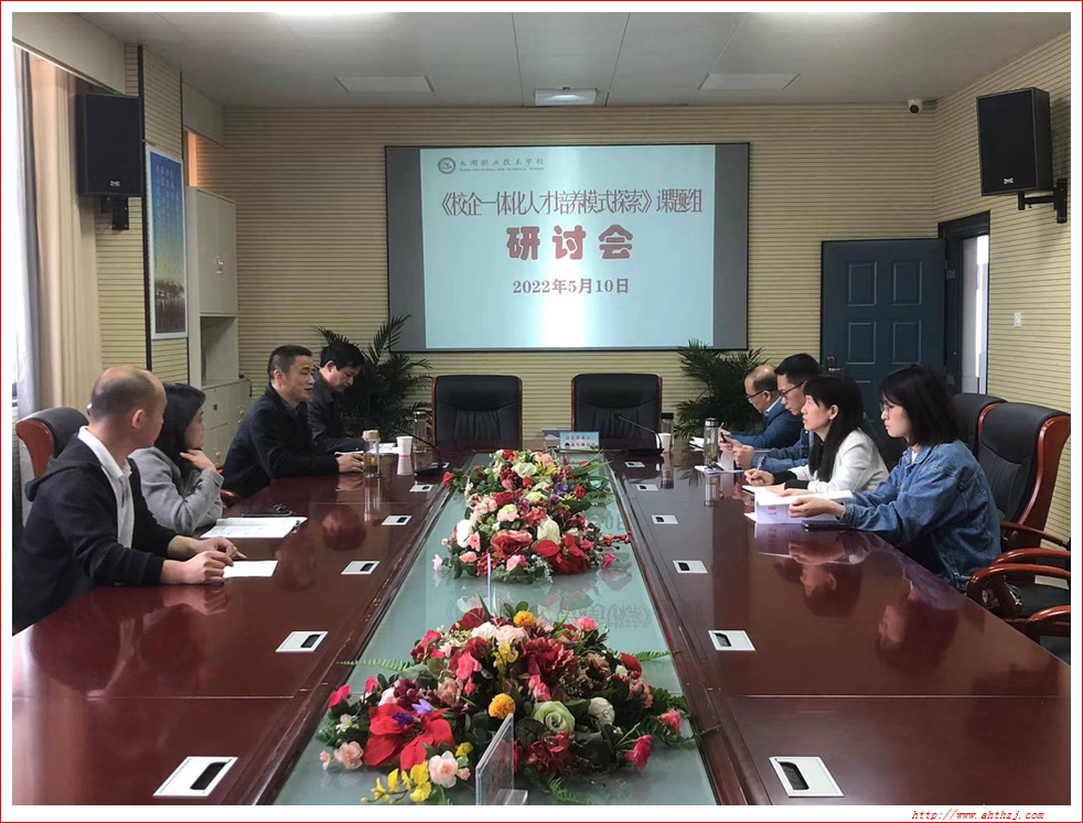 為促進(jìn)學(xué)校市級課題能高質(zhì)量地進(jìn)行深入研究,高效率地完成各階段的任務(wù),5月10日,太湖職業(yè)技術(shù)學(xué)校市級課題《校企一體化人才培養(yǎng)模式探索》課題組全體成員在科研樓三樓會(huì)議室召開了研討會(huì)。