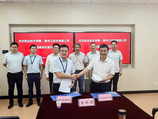 9月6日下午,安慶職業(yè)技術(shù)學(xué)院與新華三技術(shù)有限公司合作框架協(xié)議簽署儀式在2號教學(xué)樓203會議室隆重舉行。安慶職院黨委副書記、安慶職教集團(tuán)秘書長李克讓出席會議并講話。新華三技術(shù)有限公司中國區(qū)副總裁、安徽分公司總經(jīng)理盛劍暉,新華三安徽分公司副總經(jīng)理郭俊禮、區(qū)域經(jīng)理謝征樹、區(qū)域產(chǎn)品經(jīng)理馬海峰,以及安慶職院校企合作辦公室主任楊元綱、信息技術(shù)學(xué)院教學(xué)管理人員參加了簽約儀式,儀式由信息技術(shù)學(xué)院黨總支書記、院長疏國會教授主持。