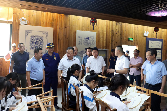 宋國權(quán)到校后,實地考察了該校國家非遺望江挑花保護與傳承基地,望江縣勞模工匠教育基地、“同心筑夢”黨建和統(tǒng)戰(zhàn)基地、黨史學習教育基地、校史陳列室等場所。