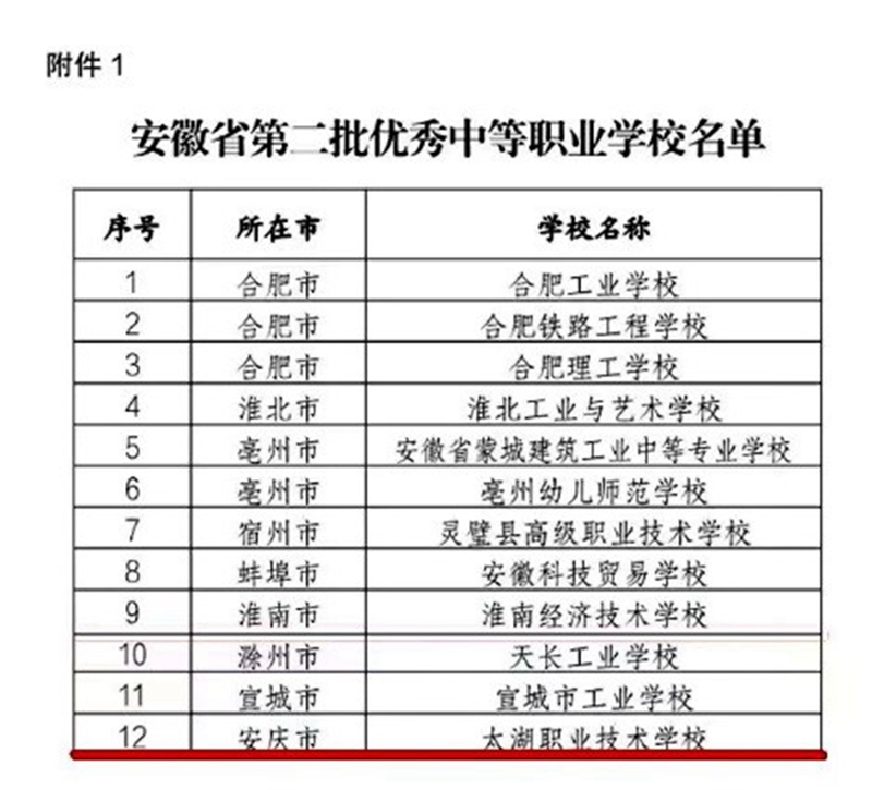 近日,省教育廳公布安徽省第二批優(yōu)秀中等職業(yè)學校(A類)名單,太湖職業(yè)技術(shù)學校榜上有名,是安慶市唯一一所入選的中職學校,成功躋身安徽省中職學校第一方陣。