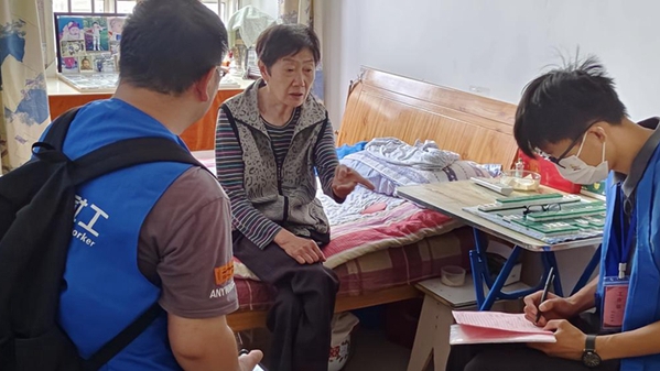 社區(qū)工作人員帶領(lǐng)志愿者們來到順安南苑小區(qū)獨居老人的家中進行慰問,查看居住環(huán)境、排查安全隱患,并對于老人的生活需求、身體健康情況,進行詳細(xì)的詢問及記錄。