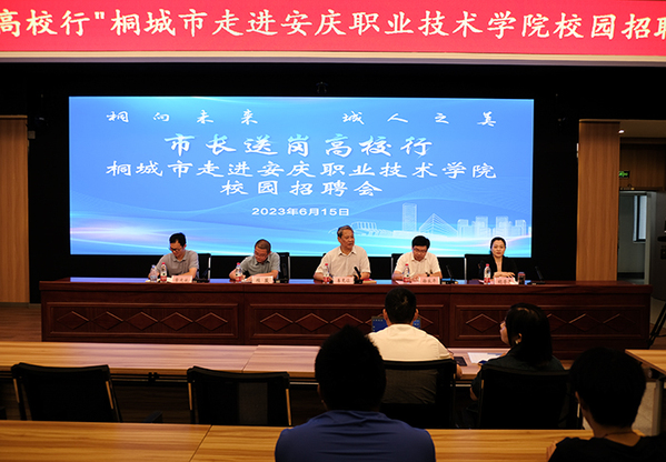 在全國(guó)上下認(rèn)真學(xué)習(xí)領(lǐng)會(huì)黨的二十大精神之際,為貫徹落實(shí)黨中央、國(guó)務(wù)院關(guān)于“穩(wěn)就業(yè)”“保就業(yè)”等相關(guān)決策部署,全面落實(shí)全國(guó)高校畢業(yè)生就業(yè)工作會(huì)議精神,整合政校企三方資源,積極引導(dǎo)畢業(yè)生本地就業(yè)創(chuàng)業(yè),進(jìn)一步提升安慶職業(yè)技術(shù)學(xué)院服務(wù)安慶地方經(jīng)濟(jì)高質(zhì)量發(fā)展能力,6月15日,“市長(zhǎng)送崗高校行”桐城市校園專場(chǎng)招聘會(huì)和“太愛(ài)才-職等您來(lái)”太湖縣校園專場(chǎng)招聘會(huì)在安慶職院圖文信息中心舉行。校黨委副書(shū)記李克讓出席活動(dòng)并致辭。桐城市副市長(zhǎng)徐良平、太湖縣縣委組織部副部長(zhǎng),縣人力資源和社會(huì)保障局黨組書(shū)記、局長(zhǎng)張文斌出席活動(dòng)。