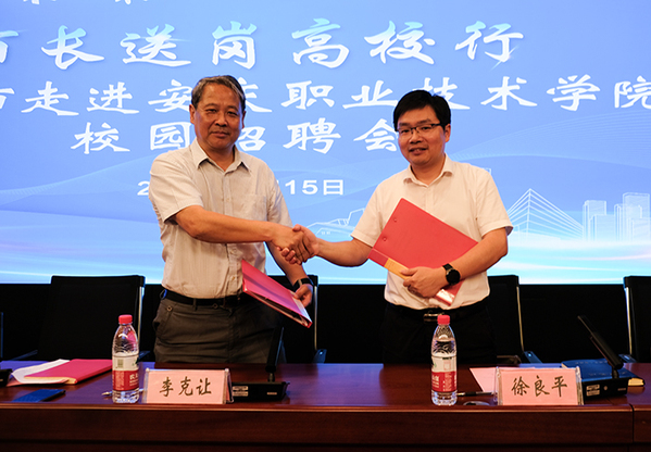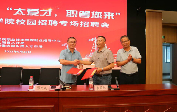 活動(dòng)現(xiàn)場(chǎng),該校與桐城市和太湖縣分別簽訂了政校戰(zhàn)略合作協(xié)議。桐城市重點(diǎn)企業(yè)桐城國(guó)軒新能源有限公司、安慶匯通汽車部件股份有限公司,太湖縣重點(diǎn)企業(yè)安徽集友新材料股份有限公司,安徽光華鋁業(yè)集團(tuán)進(jìn)行了現(xiàn)場(chǎng)宣場(chǎng)。