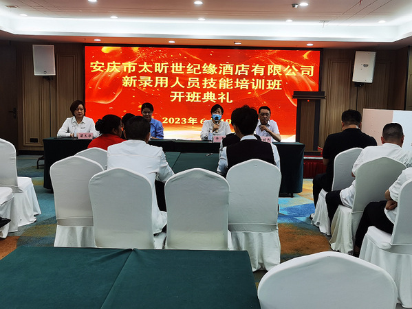 6月19日,安慶職業(yè)技術(shù)學(xué)院在安慶市太昕世紀(jì)緣酒店有限公司舉辦了新錄用人員技能培訓(xùn)班,安慶職業(yè)技術(shù)學(xué)院管理服務(wù)學(xué)院教學(xué)副院長(zhǎng)出席開(kāi)班典禮致辭,安慶市太昕世紀(jì)緣酒店有限公司人事經(jīng)理做開(kāi)班動(dòng)員講話,17名學(xué)員參加開(kāi)班典禮。