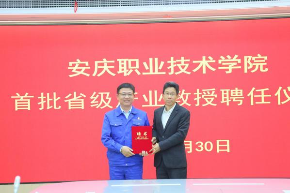 4月30日下午,安慶職業(yè)技術(shù)學(xué)院在綜合樓425會(huì)議室舉行了該校首批省級(jí)產(chǎn)業(yè)教授聘任儀式,安慶職院黨委副書記、校長(zhǎng)畢明生出席聘任儀式并向受聘教授頒發(fā)聘書。安慶職院黨委委員、組織部部長(zhǎng)、人事處處長(zhǎng)高潤(rùn)霞主持儀式,相關(guān)二級(jí)學(xué)院院長(zhǎng)、組織人事處、教務(wù)處、科技處負(fù)責(zé)人參加。