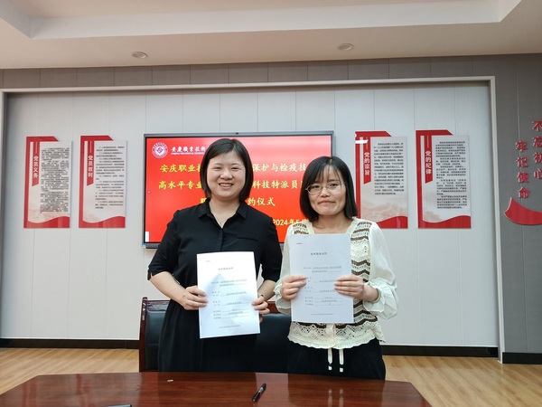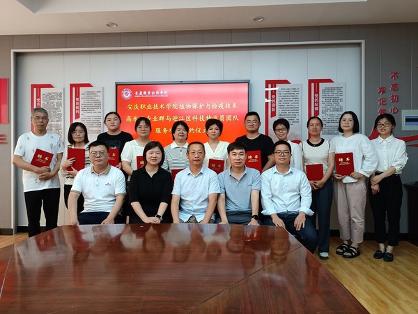 5月29日下午,安慶職業(yè)技術學院農林與服裝學院植物保護與檢疫技術高水平專業(yè)群與迎江區(qū)科技局正式簽約,組建科技特派團。迎江區(qū)科技局局長余琴、副局長胡慧,迎江區(qū)人才辦主任汪金平參加簽約儀式,安慶職院農林與服裝學院黨總支書記、院長李進恩主持儀式,校科技處負責同志和植保高水平專業(yè)群的全體教師參加。