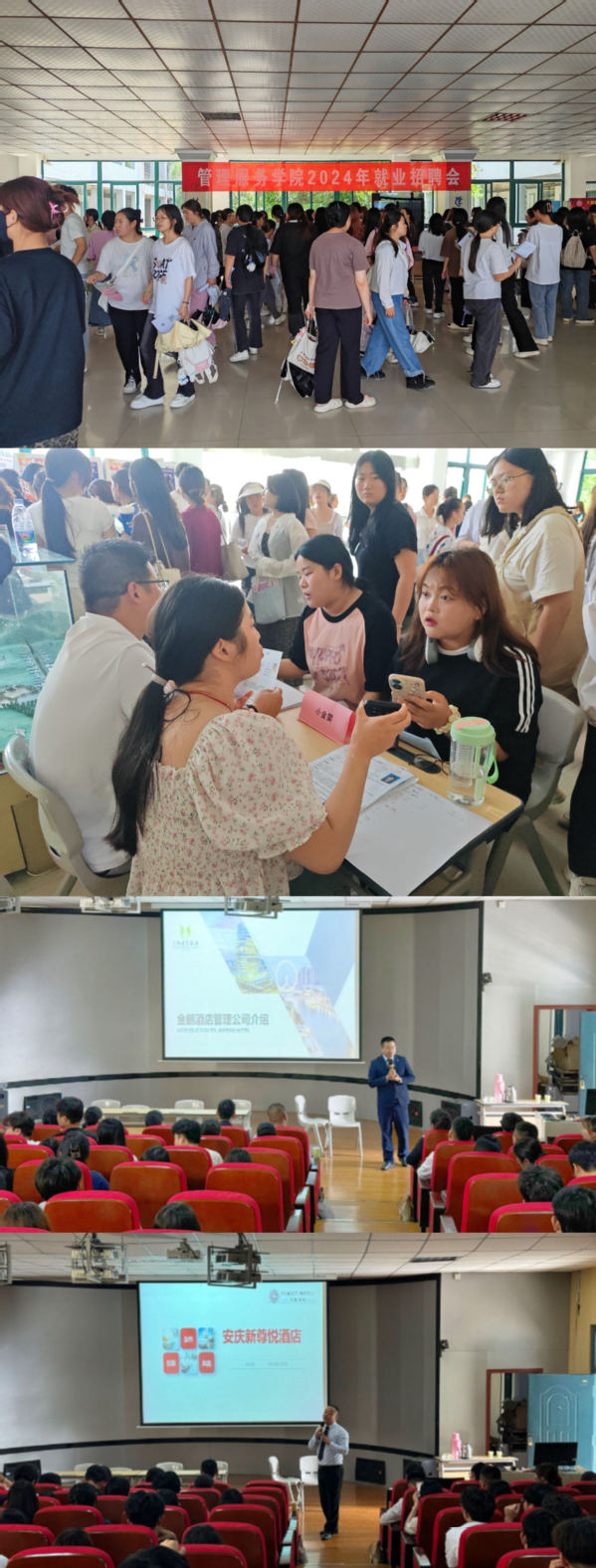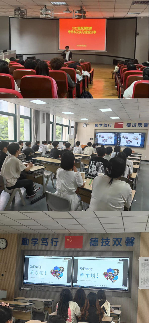 針對(duì)有求職意向的學(xué)生,通過學(xué)院網(wǎng)站、學(xué)工微信群、班級(jí)群等信息發(fā)布平臺(tái)及時(shí)向畢業(yè)生發(fā)布各類就業(yè)信息,力爭實(shí)現(xiàn)“就業(yè)信息全覆蓋”。邀請(qǐng)上海祥源希爾頓HR、安慶思佰特總經(jīng)理開展了專場講座,從行業(yè)前沿動(dòng)態(tài)、實(shí)際工作情況、求職面試技巧等方面幫助學(xué)生提升求職能力。同時(shí),學(xué)院積極發(fā)動(dòng)校友資源,邀請(qǐng)往屆優(yōu)秀畢業(yè)生代表進(jìn)校宣講,如2016屆酒店管理專業(yè)畢業(yè)生李正--寧波錢湖國賓館人事經(jīng)理、2023屆旅游管理專業(yè)畢業(yè)生韓信哲--溫州暢旅國際旅游有限公司合伙人等優(yōu)秀校友,同2022級(jí)學(xué)生分享成長經(jīng)歷、傳授求職及職場工作經(jīng)驗(yàn),用朋輩的榜樣作用引導(dǎo)學(xué)生轉(zhuǎn)變就業(yè)觀念。