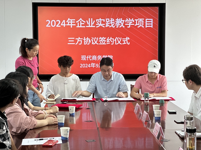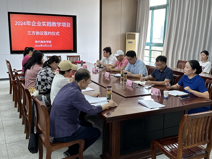 9月25日,安慶職業(yè)技術(shù)學(xué)院現(xiàn)代商務(wù)學(xué)院與安徽云霽電子商務(wù)有限公司的2024年學(xué)生電商客服崗位實(shí)訓(xùn)教學(xué)項(xiàng)目簽約儀式在學(xué)校3號教學(xué)樓510會議室舉行。云霽電商公司總經(jīng)理汪義德及公司相關(guān)領(lǐng)導(dǎo),現(xiàn)代商務(wù)學(xué)院黨總支書記、院長金啟勝,該院學(xué)生工作負(fù)責(zé)人,電子商務(wù)專業(yè)負(fù)責(zé)人、跨境電子商務(wù)專業(yè)負(fù)責(zé)人以及相關(guān)班級輔導(dǎo)員和學(xué)生代表參加簽約儀式,會議及儀式由該院教學(xué)工作負(fù)責(zé)人主持。