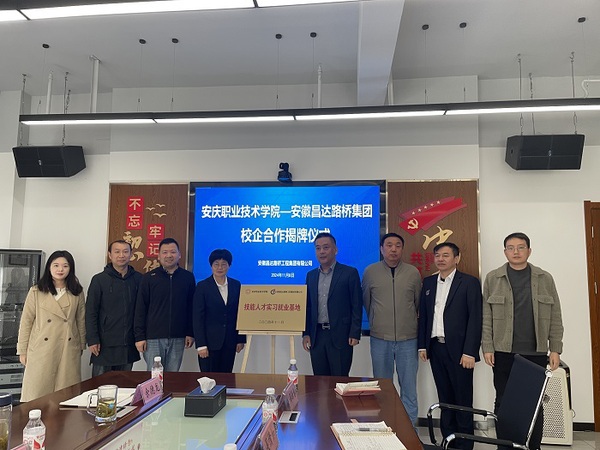 11月8日上午,安慶職業(yè)技術(shù)學(xué)院建筑工程學(xué)院在安徽昌達(dá)路橋工程集團(tuán)有限公司舉行校企合作技能人才實習(xí)就業(yè)基地揭牌儀式。該院黨總支書記、院長陳月萍教授,安徽昌達(dá)路橋工程集團(tuán)有限公司總經(jīng)理劉峰共同揭牌。企業(yè)職能部門負(fù)責(zé)人、該院分管學(xué)生工作負(fù)責(zé)人及相關(guān)教師代表參加揭牌儀式。