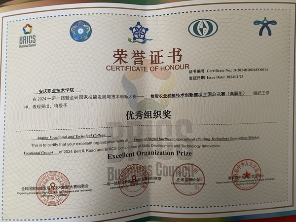 近日,“一帶一路”暨金磚國家技能發(fā)展與技術創(chuàng)新大賽,首屆數(shù)智農(nóng)業(yè)種植技術創(chuàng)新賽項和首屆病蟲害識別與防治賽項比賽結果揭曉。安慶職業(yè)技術學院農(nóng)林與服裝學院植物保護與檢疫技術專業(yè)12名學生共斬獲三個二等獎、兩個三等獎。