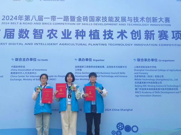 數(shù)智農(nóng)業(yè)種植技術創(chuàng)新賽項包括虛擬仿真和實操兩部分,涵蓋了農(nóng)作物種植管理過程中的全方位知識,貼近生產(chǎn)實際,選手需要模擬農(nóng)業(yè)生產(chǎn)過程的種植布局、水肥管理、病蟲害防控、采收收獲4個環(huán)節(jié)。經(jīng)過激烈角逐,植保專業(yè)的宋蕊、陳佳莉、宋舒靜組成的參賽隊獲得二等獎,指導老師李萍和許慧慧被評為優(yōu)秀指導教師,學校獲優(yōu)秀組織獎。張南和丁晨指導的王曉慧、徐曉萱、朱雪英組成的參賽隊伍榮獲三等獎。