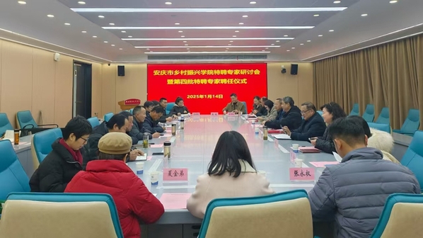 1月14日上午,安慶鄉(xiāng)村振興學(xué)院特聘專家研討會(huì)暨第四批特聘專家聘任儀式在安慶職業(yè)技術(shù)學(xué)院召開。安慶職院黨委副書記李克讓主持會(huì)議并講話,安慶市農(nóng)業(yè)農(nóng)村局副局長(zhǎng)王輝出席會(huì)議,來(lái)自安慶市農(nóng)業(yè)農(nóng)村局、省內(nèi)涉農(nóng)企業(yè)多位專家,安慶職院相關(guān)學(xué)院負(fù)責(zé)同志參加了會(huì)議。