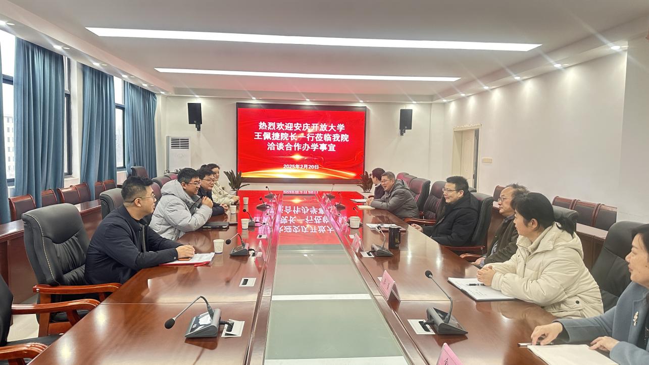2025年2月20日上午,安慶開放大學(xué)黨委副書記、校長王佩捷,辦公室主任李玲、開放教育學(xué)院院長楊小軍、副院長劉玄一行蒞臨安徽安慶技師學(xué)院,就兩校深度合作展開洽談。學(xué)院黨委副書記、院長徐英武攜院領(lǐng)導(dǎo)班子成員及系部負(fù)責(zé)同志熱情接待王佩捷校長一行。