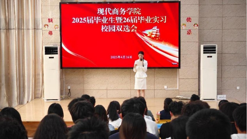4月16日下午,安慶職業(yè)技術(shù)學(xué)院現(xiàn)代商務(wù)學(xué)院舉辦2025屆畢業(yè)生校園雙選會。學(xué)院黨總支書記金啟勝、招生就業(yè)處負(fù)責(zé)人及800余名師生參加活動。