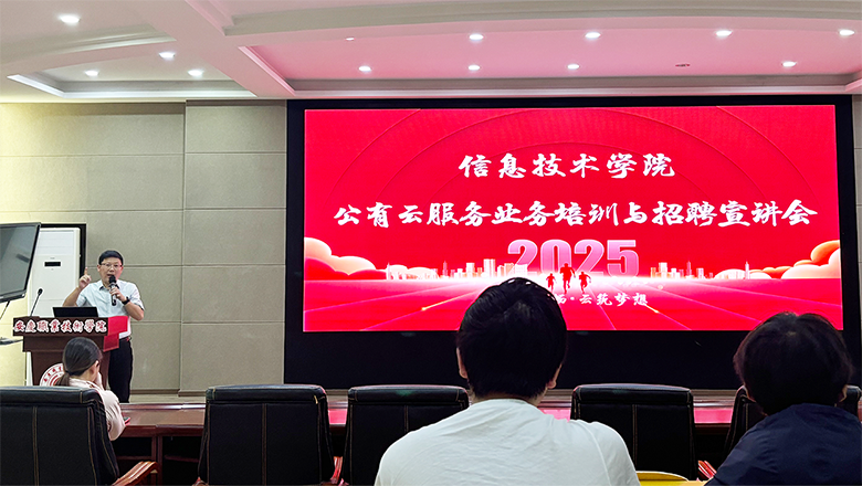 5月14日,訂單班合作企業(yè)安慶安暢網絡科技有限公司走進安慶職業(yè)技術學院信息技術學院,在2號教學樓信仰報告廳成功舉辦公有云服務業(yè)務培訓暨崗位招聘答疑會?;顒游藖碜杂嬎銠C網絡技術、計算機應用技術等專業(yè)的90余名學生參與。該院學生工作負責人主持活動。