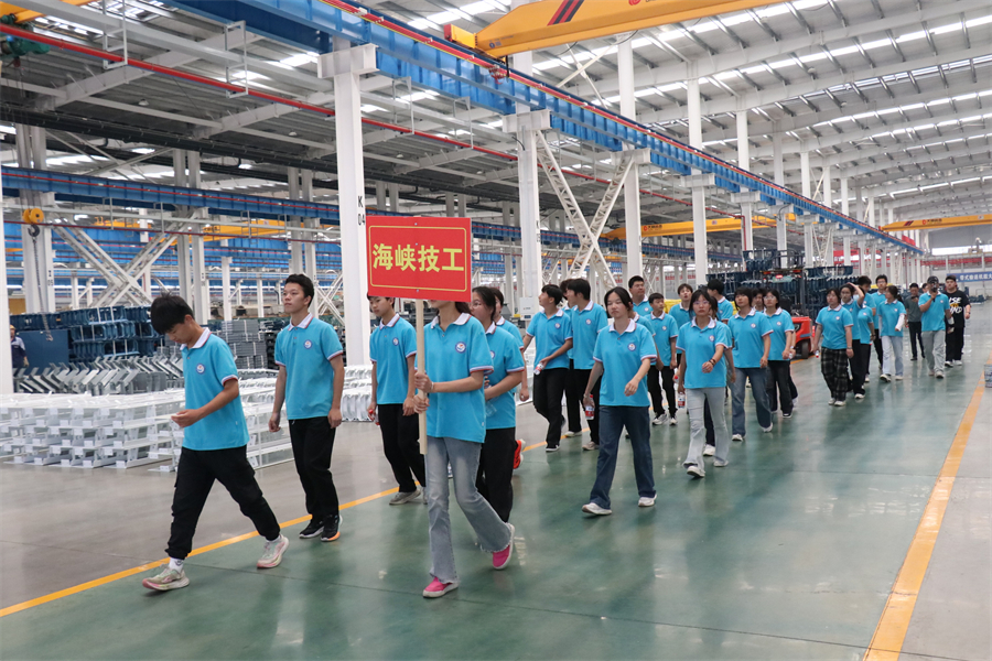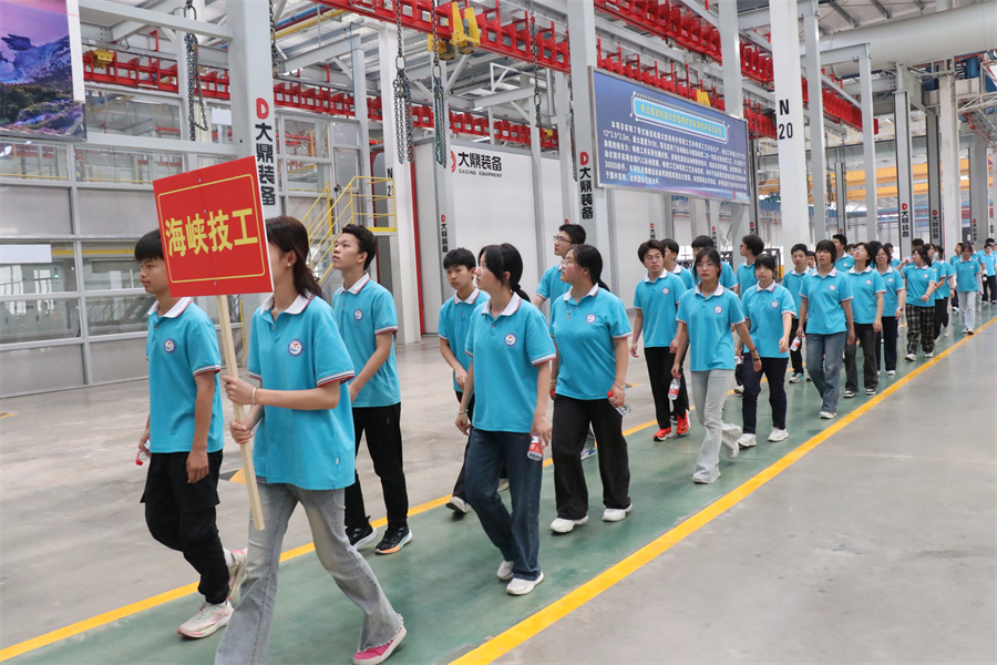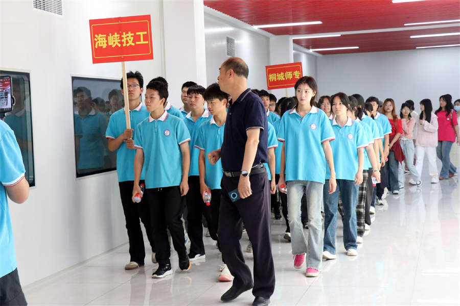 隨后高校、職校學生赴金科印務、大鼎智能裝備等重點工業(yè)企業(yè)實地觀摩?;顒又校瑢W生們深入企業(yè)生產一線,觀摩智能化生產線,聆聽技術人員細致講解,了解產品制造流程與技術創(chuàng)新,感受企業(yè)文化與生機。家鄉(xiāng)桐城發(fā)展的蓬勃生機和火熱場景給同學們留下了深刻印象。