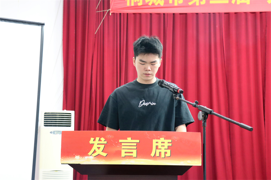 桐城海峽高級技工學校優(yōu)秀畢業(yè)生代表,2023屆智能制造專業(yè)高級工班學生,現金科印務公司鍍鋁車間機長柯方鈺,上臺跟同學們分享了他的就業(yè)經歷與感悟,他倡議同學們以所學之長投身家鄉(xiāng)建設,在新時代桐城發(fā)展的浪潮中,書寫屬于自己的奮斗篇章!
